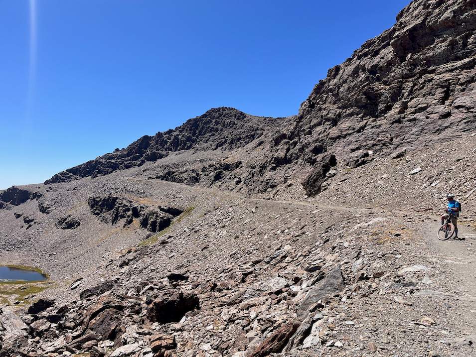 La ruta reina. Ascenso al Veleta y un espectacular descenso por pista cerrada al tráfico hacia el Mulhacén, terminando en el pueblo de Capileira.