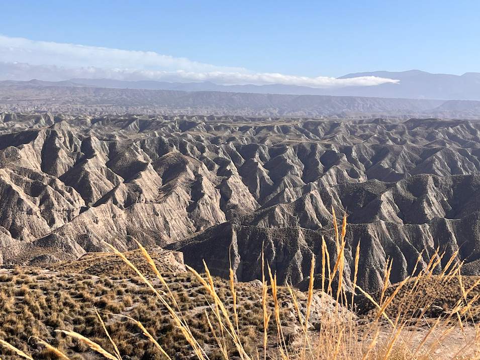 Explora un paisaje semidesértico único en Europa, con cárcavas y montañas rojizas.